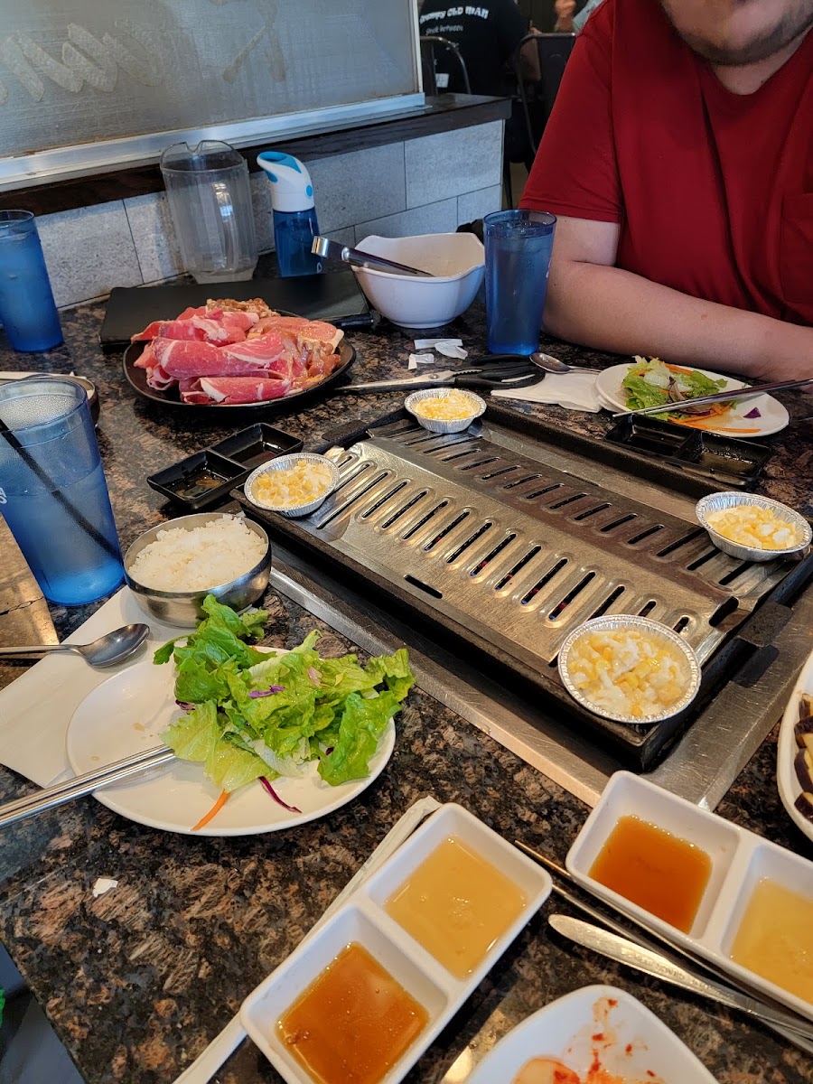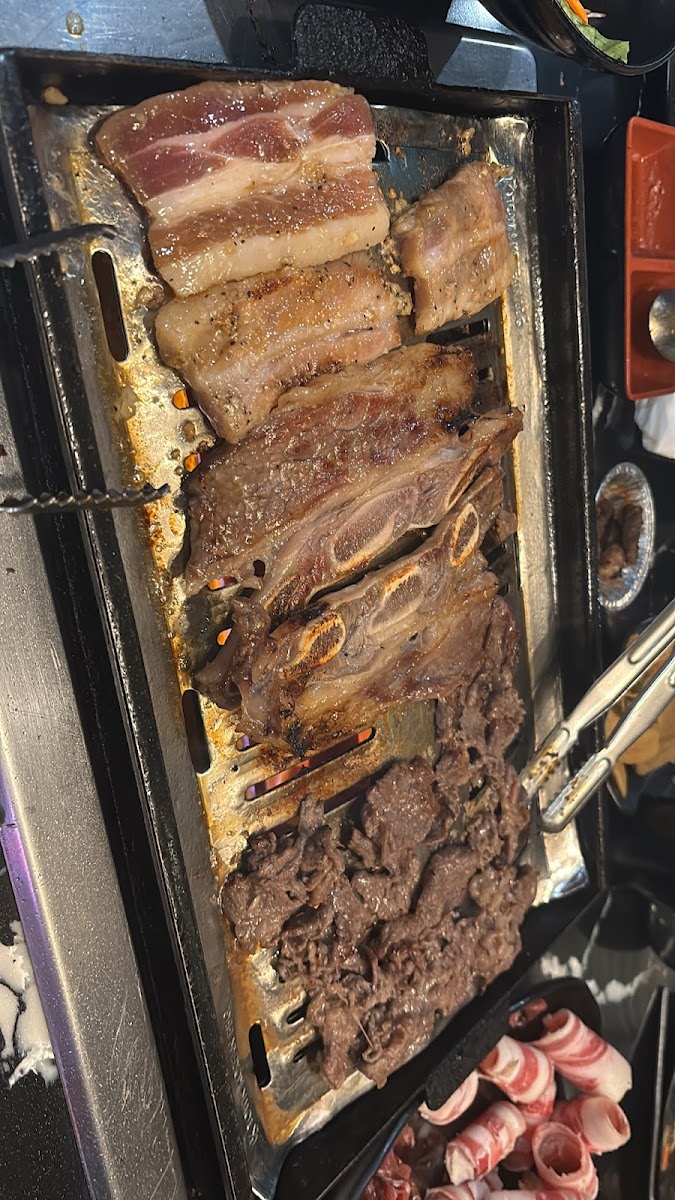 Upon entering, you'll find a modern and clean atmosphere with friendly staff ready to provide excellent customer service. The menu boasts a wide variety of meats and vegetables, perfect for grilling at your table. One standout feature is the youthful ambiance, complete with large TV screens playing sports and K-Pop music, creating a lively and bustling environment.